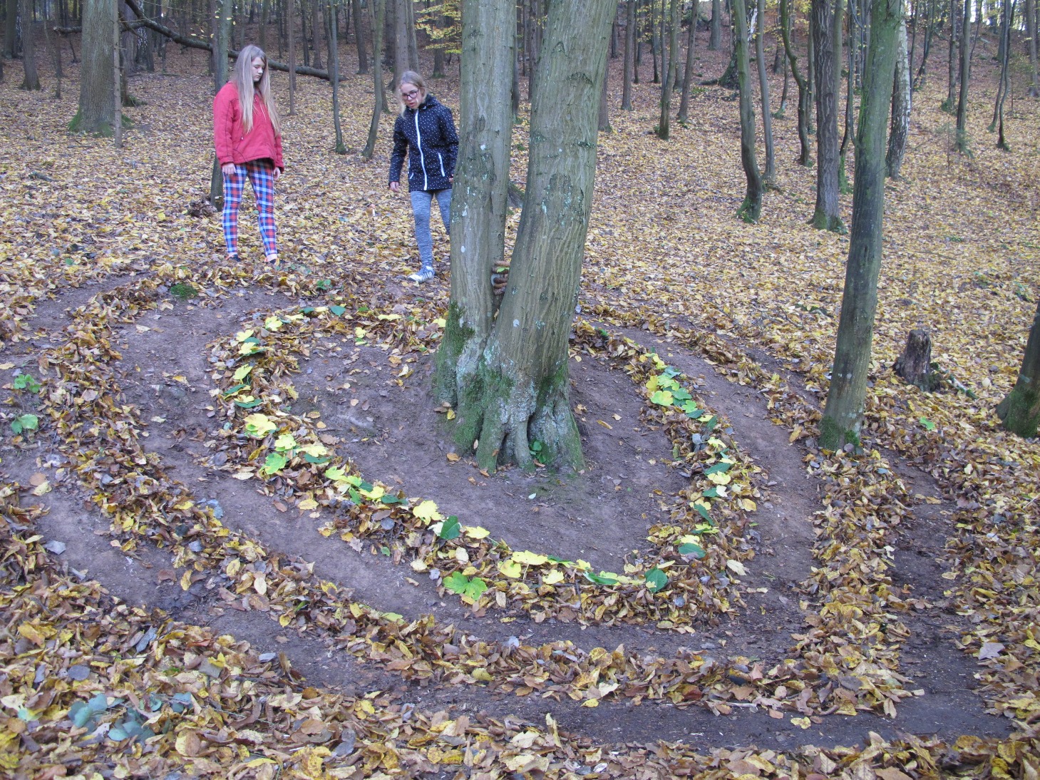 Dopoledne se studenti rozdělili do čtyř skupin, v každé měli jednoho průvodce. Plnili spolu různé úkoly – jako například LandArt, všem se moc povedl.