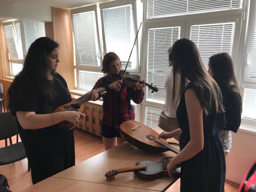 Žáci kvinty a sexty se v rámci předmětu EVV a EVH zúčastnili kunsthistorického projektu, který pro ně připravili prof. Popelka a prof. Hýsková. Projekt začal ve škole, kde žáky přivítal dr. Pavel Josef Macků, který žáky prakticky seznámil s téměř kompletní vývojovou řadou všech druhů dechových a strunných nástrojů. Součástí jeho přednášky o vývoji hudebních nástrojů od prehistorických až po současné byla i živá hra na 50 nástrojů! Poté jsme se přesunuli do Pražákova paláce, kde se žáci zúčastnili programu Univerzalizace práce, jehož součástí byla i prohlídka výstavy V. Boudníka.