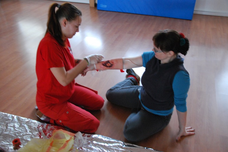 V úterý 3.3. nás navštívili pracovníci Červeného kříže a s žáky tercie a septimy probrali i prakticky vyzkoušeli na figurínách první pomoc.